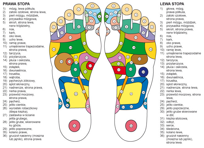 Medycyna chińska nie bez powodu nazywa stopę mapą całego ciała lub drugim sercem! W refleksoterapii ważne jest też zastosowanie odpowiednich technik uciskania. Refleksoterapia to metoda leczniczego masażu stóp w której stymulowane są określone punkty i strefy odruchowe na stopach, odpowiadające poszczególnym . Jak masować stopy w razie stresu, a jak przy objawach infekcji? To zabieg wprowadzający całe ciało w błogostan.